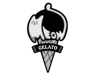 Using the word "meow" to incorporate the shape of a cat on a ice cream cone. Using the happy and delicious color in the design to hope customer will attract to and happy when consuming the product.